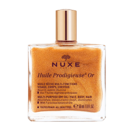 L’Huile pailletée Nuxe vous permet de prendre soin de votre peau et de vos cheveux en un seul geste :