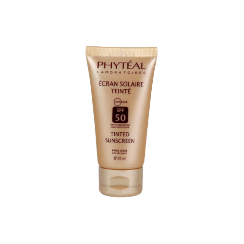 PHYTÉAL écran solaire teinté beige doré SPF 50 UVA combine une protection solaire, un fond de teint et une crème hydratante. Il présente une texture fluide, légère et discrète et un touché non gras.